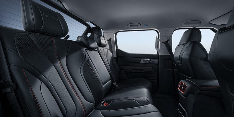 ในส่วนห้องโดยสารของ BYD Shark ให้บรรยากาศที่จริงจังราวสถานีบังคับการ แต่ก็อุดมไปด้วยระบบความบันเทิงในแบบ Smart Cockpit ซึ่งมีจอมัลติฟังก์ชันกลางขนาด 12.8 นิ้ว รองรับการเชื่อมต่อสมาร์ตโฟน