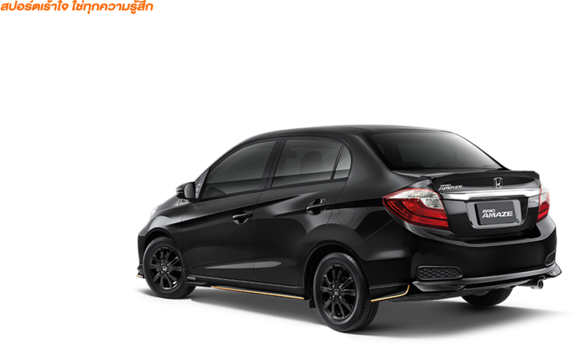 ความโดดเด่นที่ไม่เป็นรองใครกับการตกแต่งที่สวยงามกับเวอร์ชั่น BLACH SPORT ที่ทำให้ HONDA BRIO AMAZE ดูโดดเด่นบนพื้นสีดำ และตัดขอบด้วยสีส้มสวยงาม