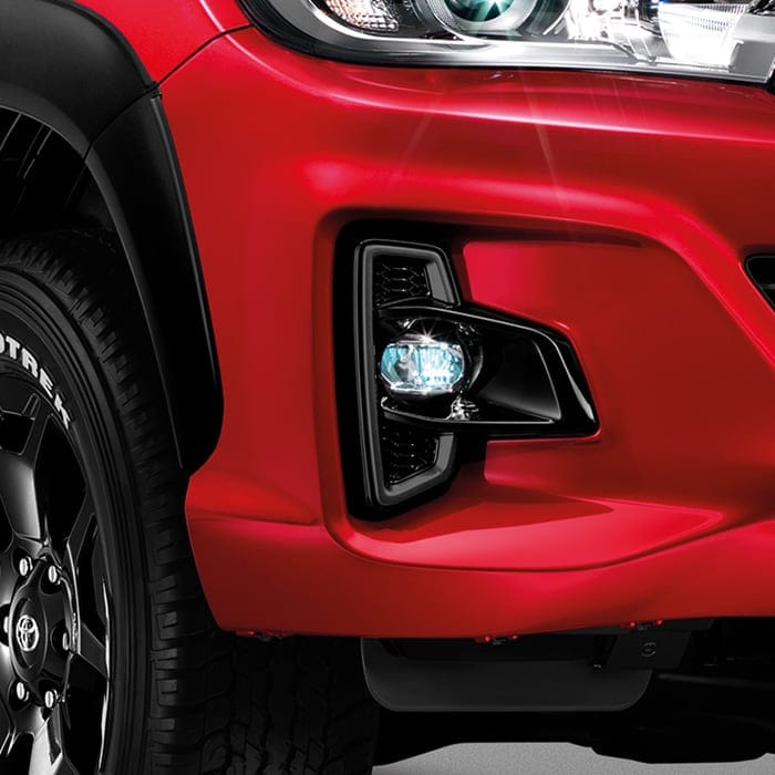 Toyota Hilux Revo ROCCO 2018 มากับกระจังหน้า พร้อมชุดแต่งกันชนหน้า สะท้อนมาดแกร่ง ด้วยดีไซน์ดุดันสะกดทุกสายตา สีดำที่เพิ่มเติมทำให้ดุดันพร้อมไฟหน้าที่ดูโฉบเฉี่ยวแข็งแกร่งมากกว่าเดิม Toyota Hilux Revo ROCCO 2018 มาพร้อมไฟตัดหมอกหน้าแบบ LED โดดเด่นเร้าใจด้วยดีไซน์ที่ดุดัน ช่วยเพิ่มทัศนวิสัย และความปลอดภัยขณะขับขี่เมื่อฝนตกหนัก หรือหลอกลงจัด